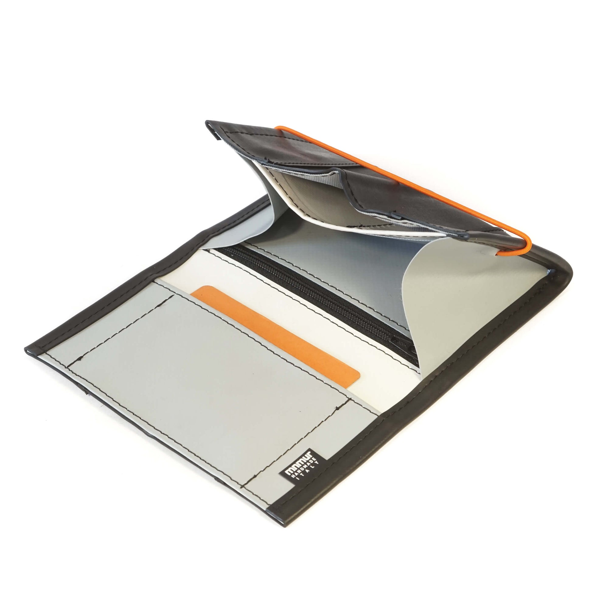 Two pockets for documents, business cards and receipts.
