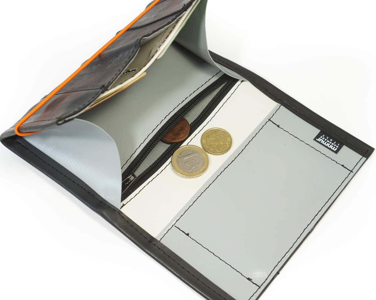 Coin compartment with zip.