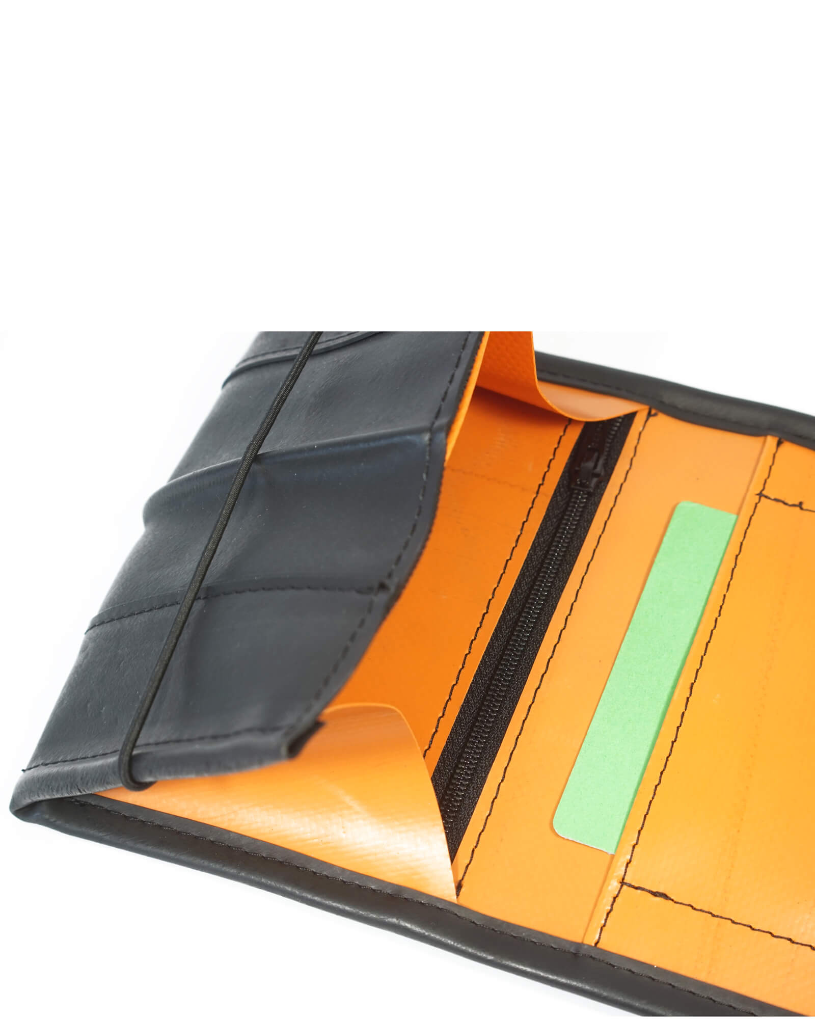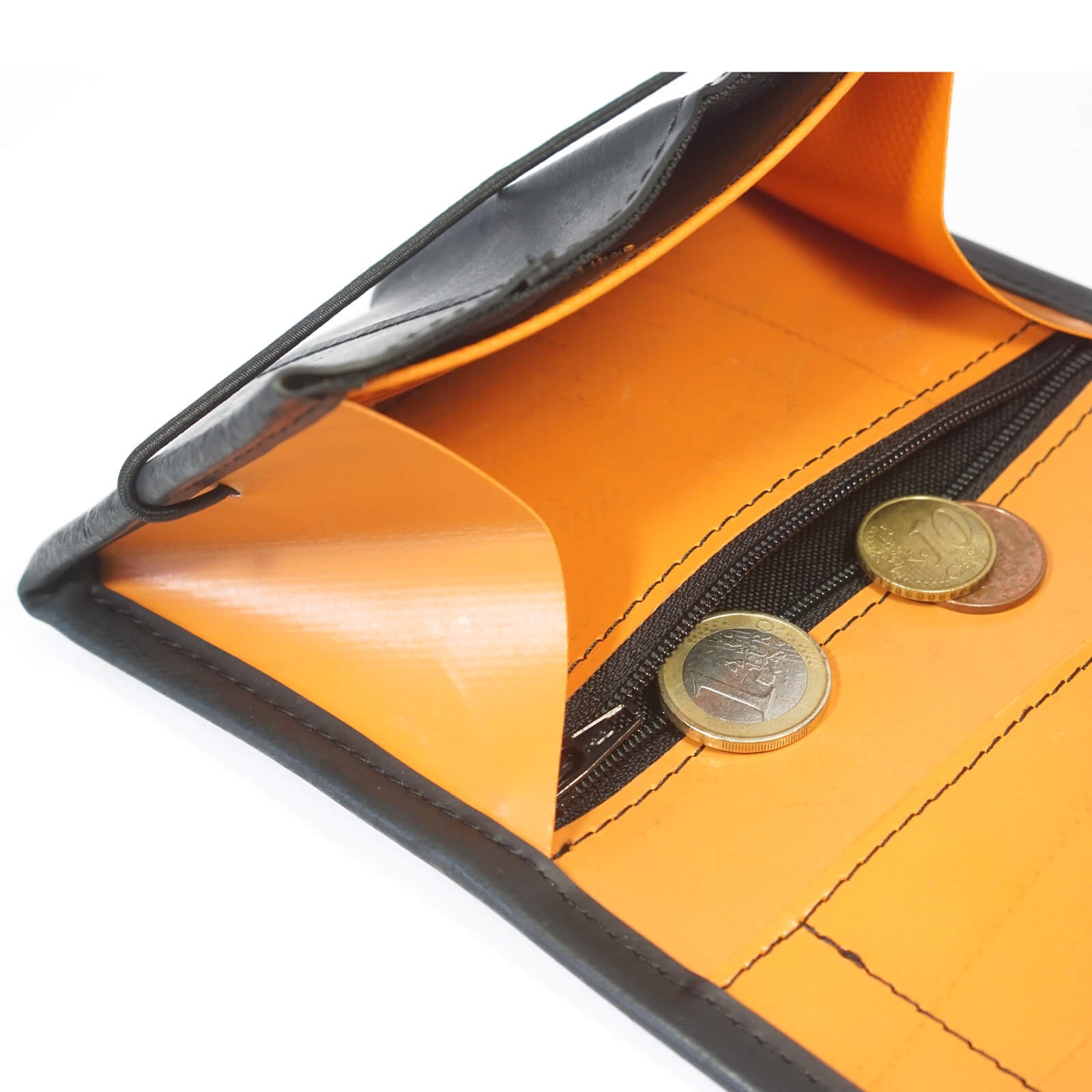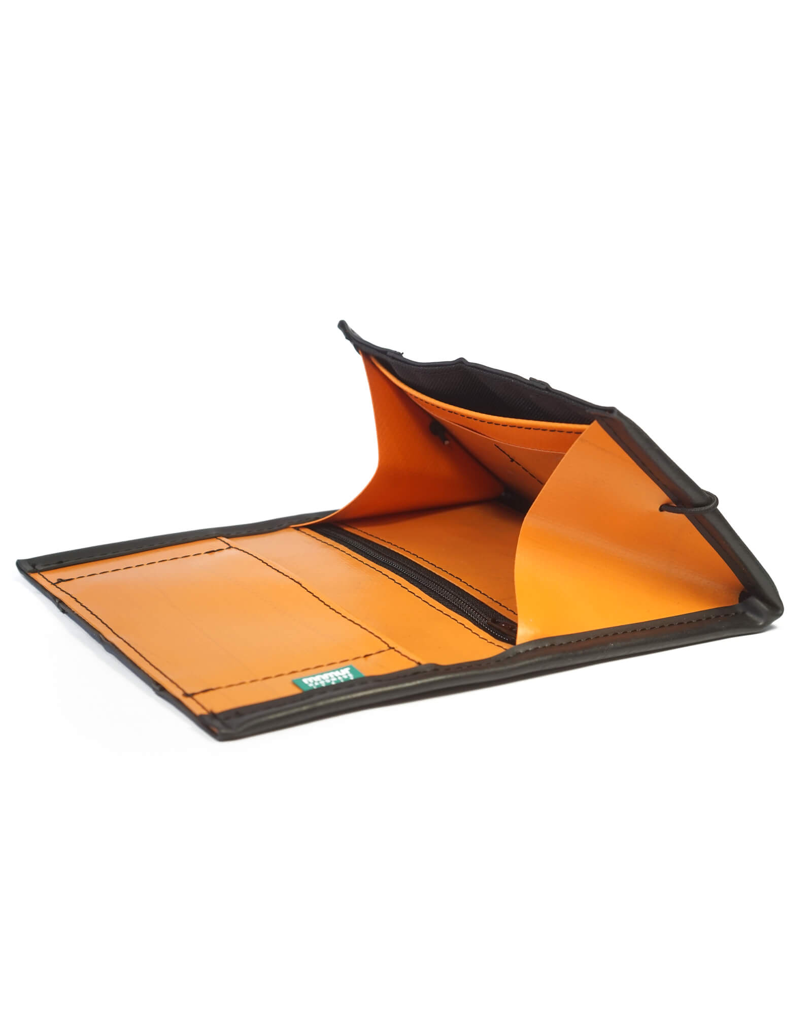 This wallet is characterised by a small and well-kept form. The interior consists of a number of elements that make it an essential and functional accessory.