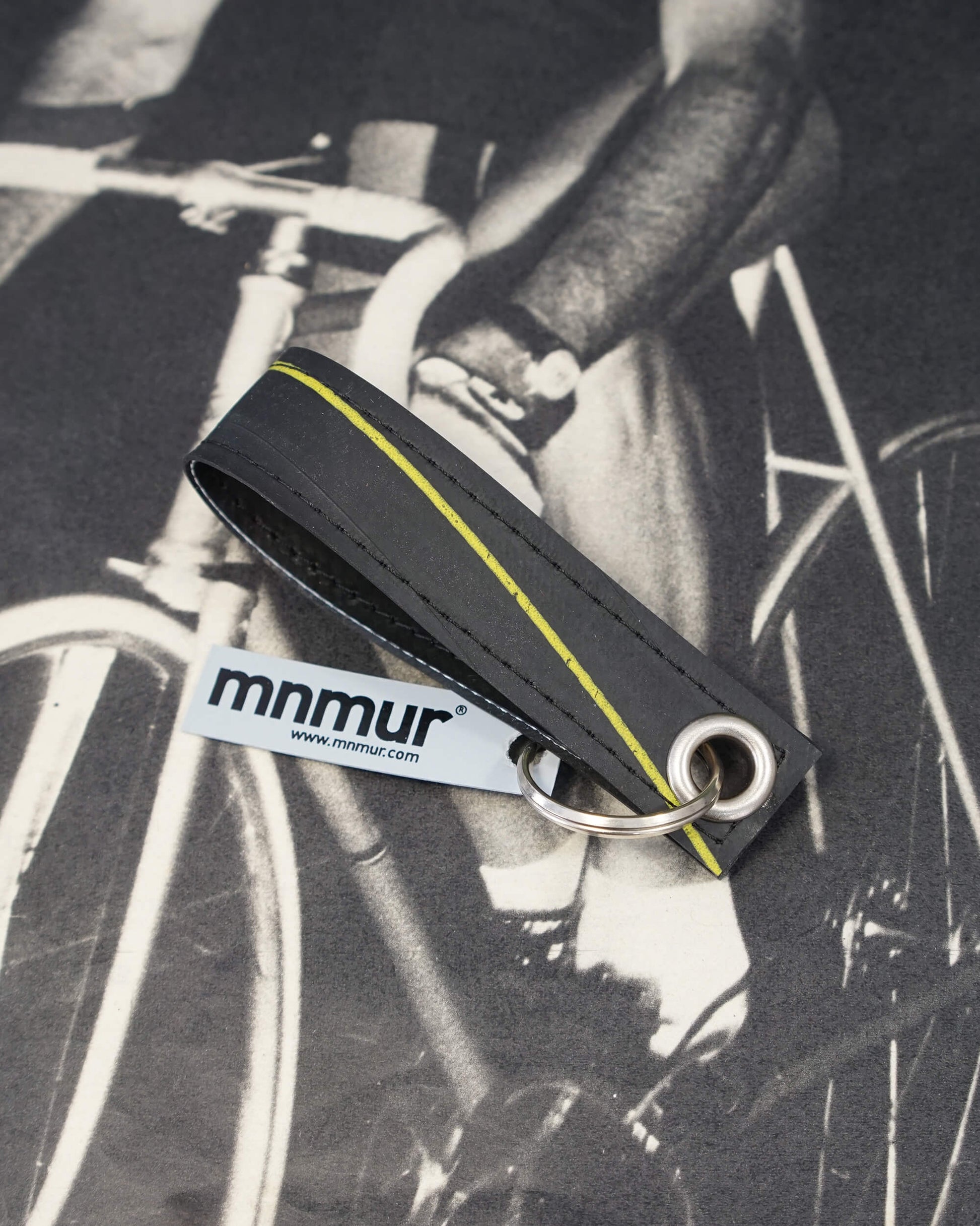 Portachiavi prodotto artigianalmente riciclando i copertoni usati delle biciclette. E’ un accessorio pratico e originale, da portare in tasca o in borsa.