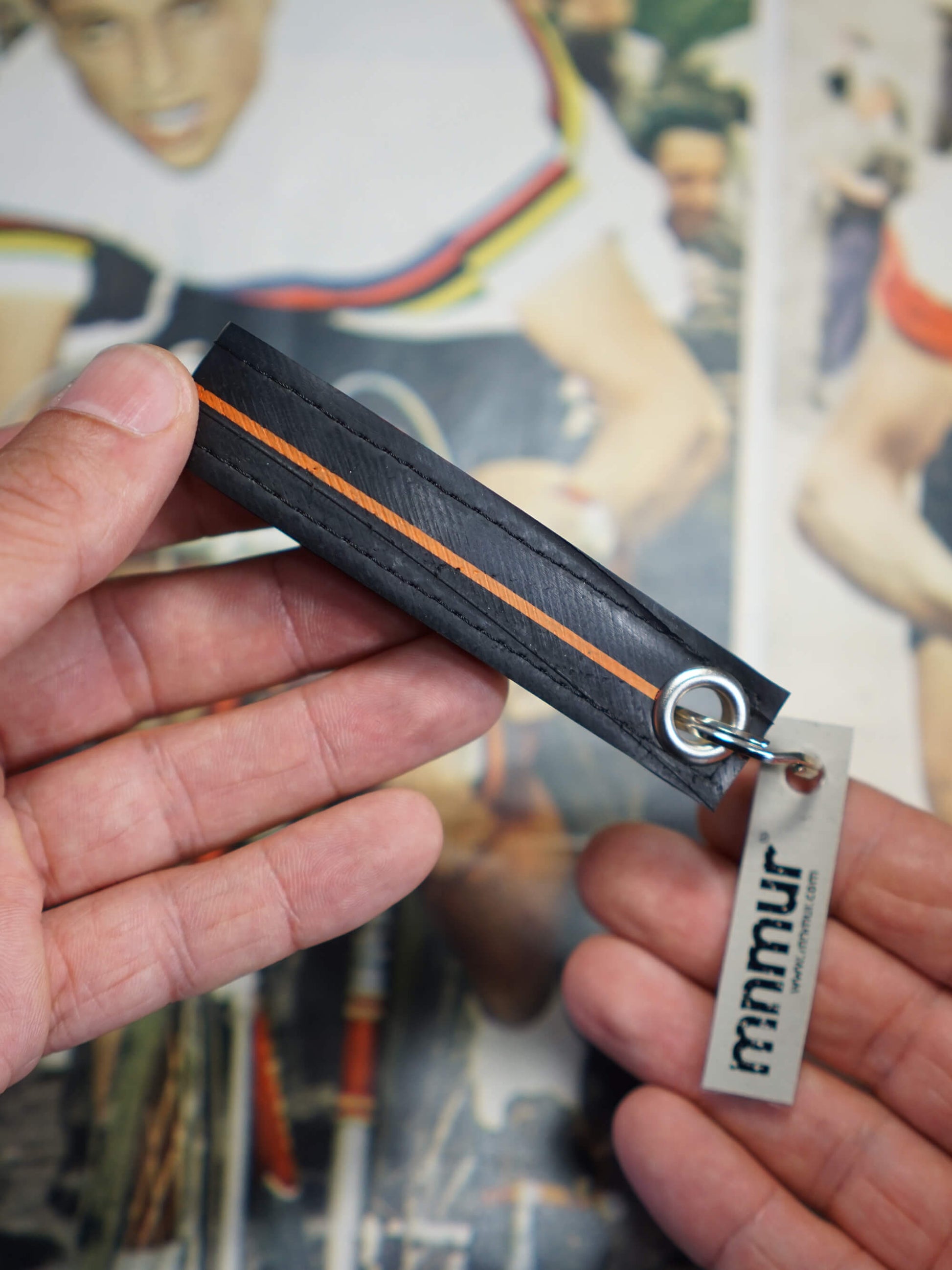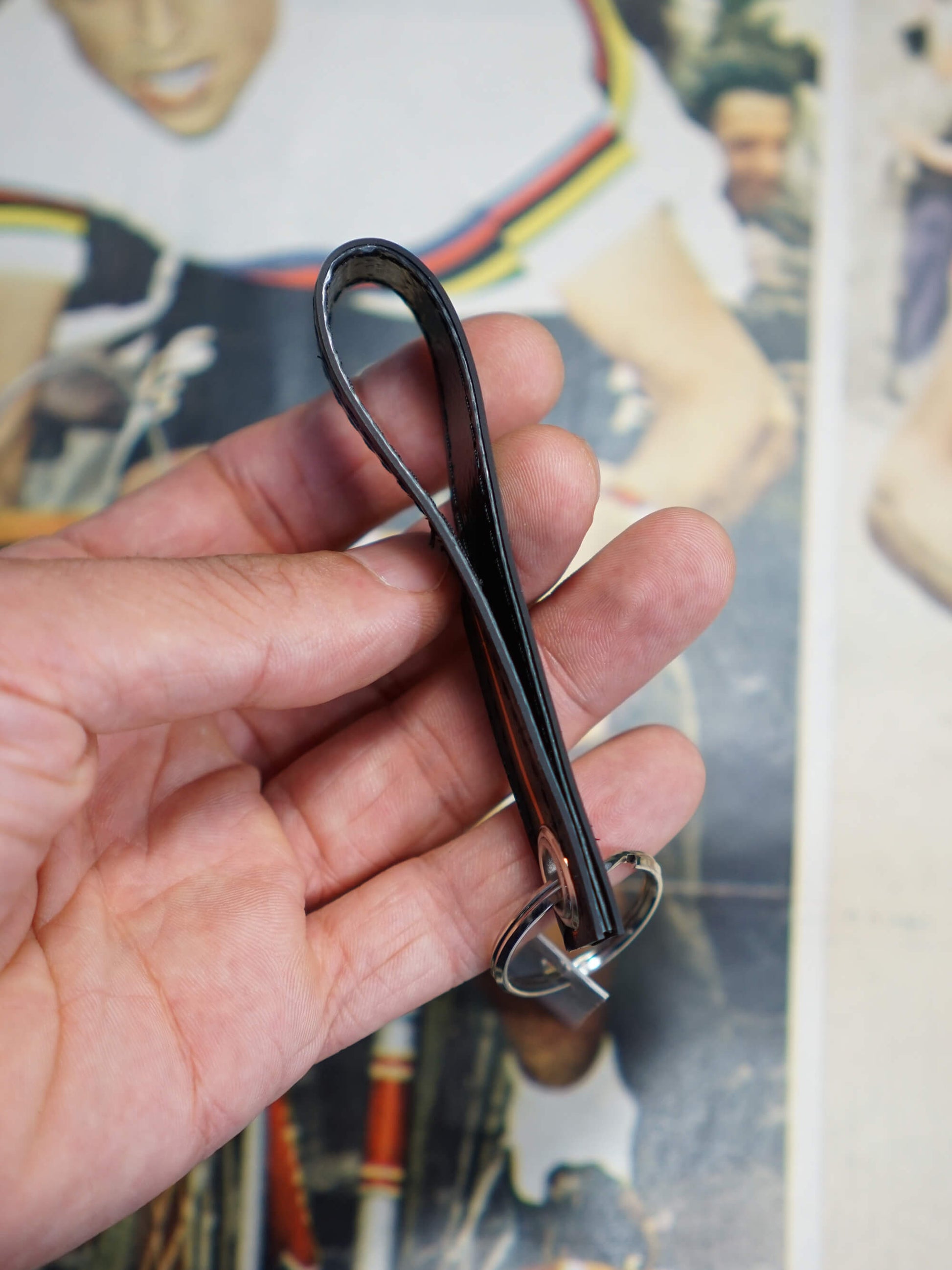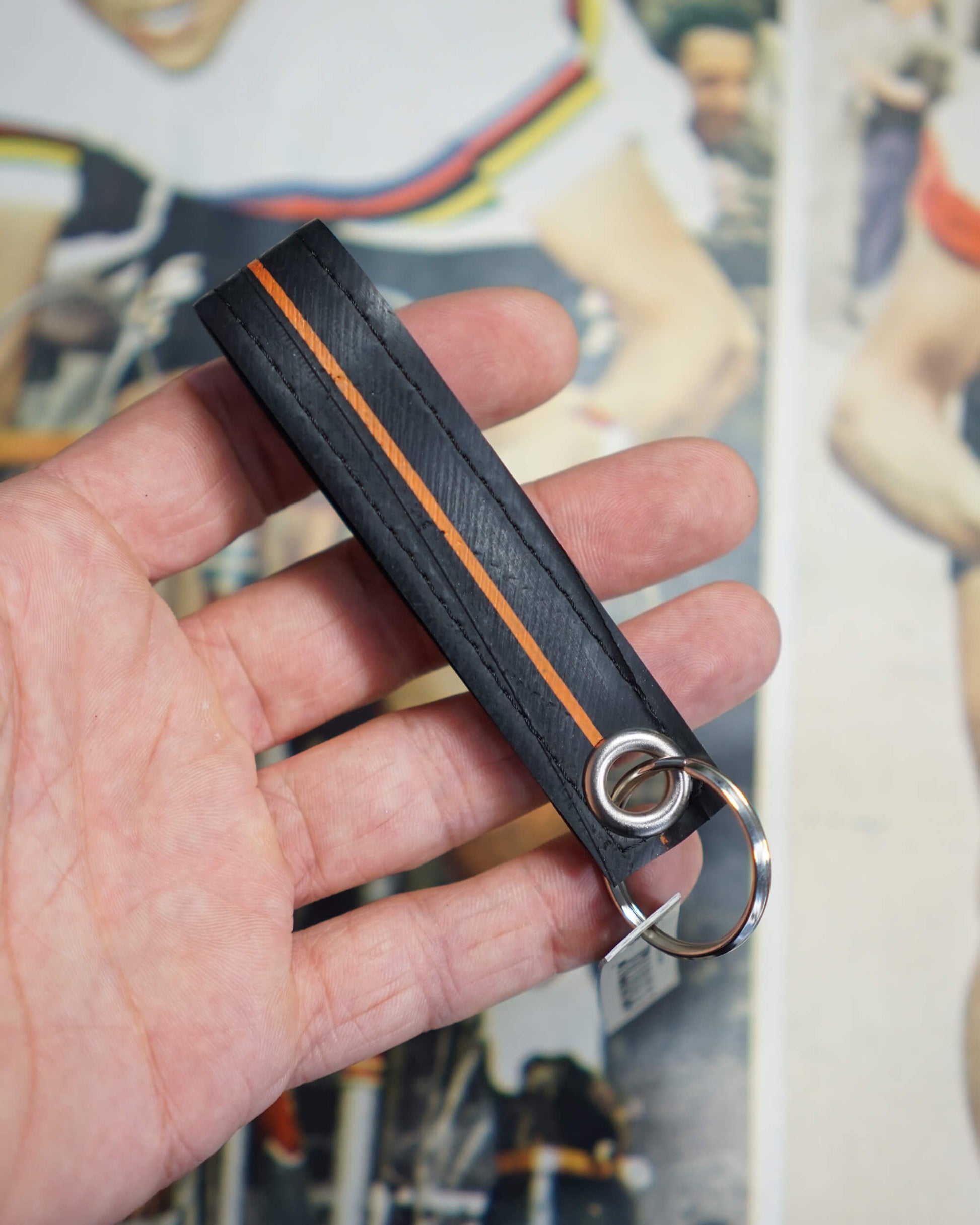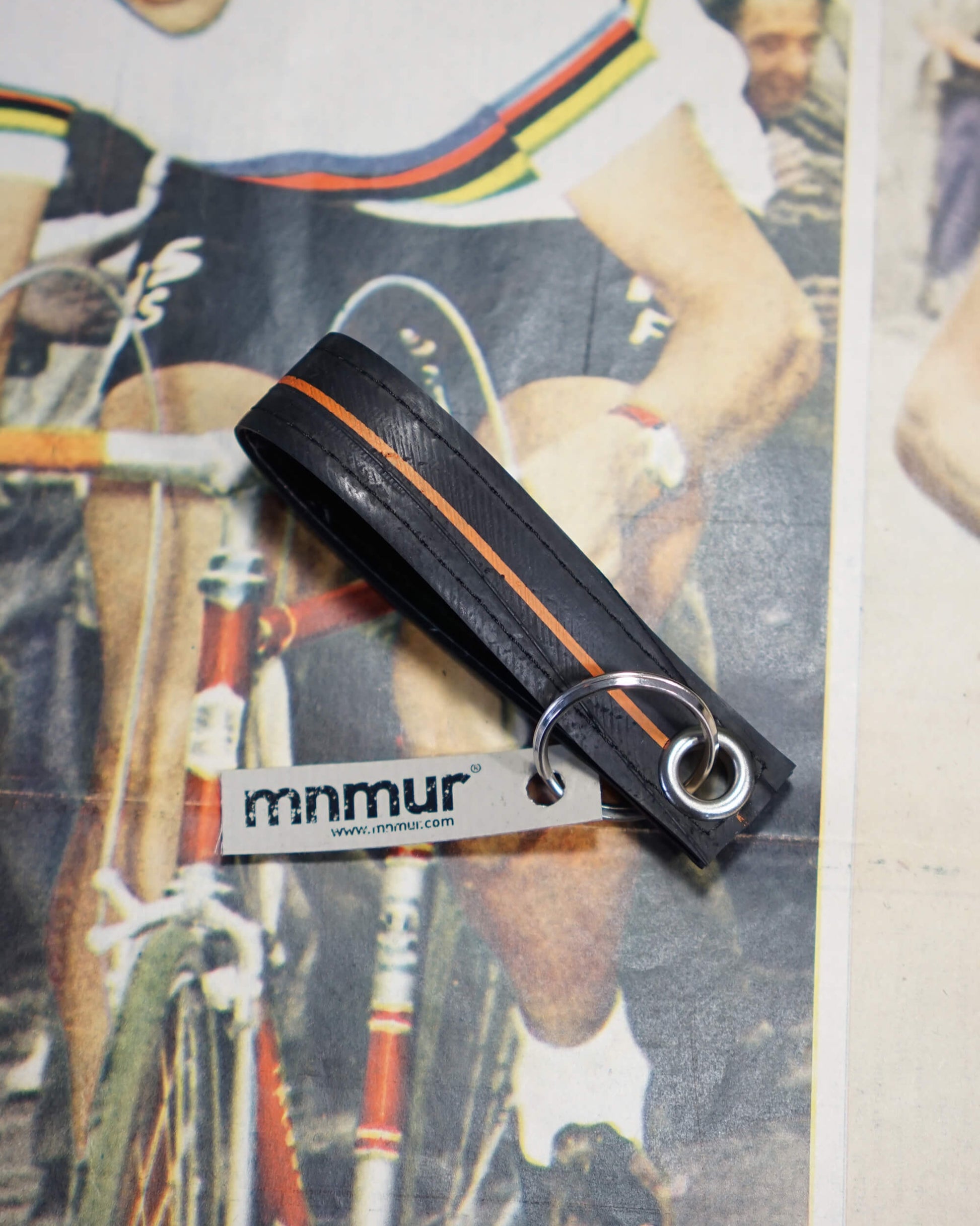 Portachiavi prodotto artigianalmente riciclando i copertoni usati delle biciclette. E’ un accessorio pratico e originale, da portare in tasca o in borsa.